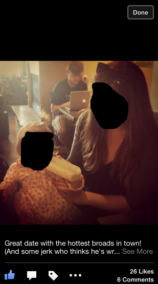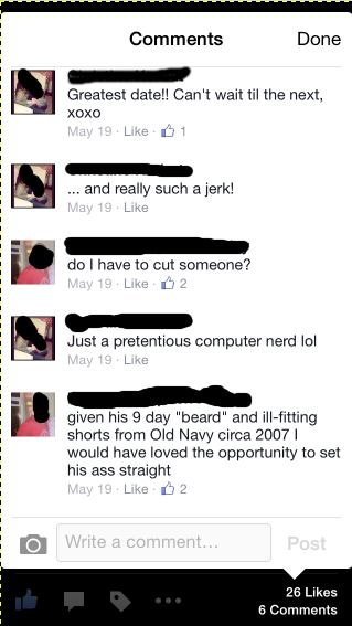 So someone took a picture in Starbucks that I happened to be in the background of and posted it to facebook. Someone who was friends with the person who took the picture and recognized me and showed me the pictures. I got a little bit of a kick out of this. But then the comments. Pure gold: